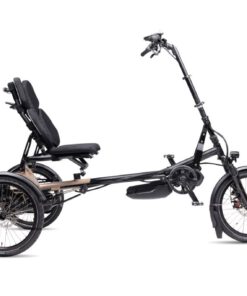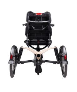 Auf diesem Dreirad haben Sie zwei Sitzpositionen zur Auswahl: aufrecht sitzend oder dynamisch mit leichter Neigung nach hinten. In beiden Positionen mit stufenloser Lehnen-Einstellungen.